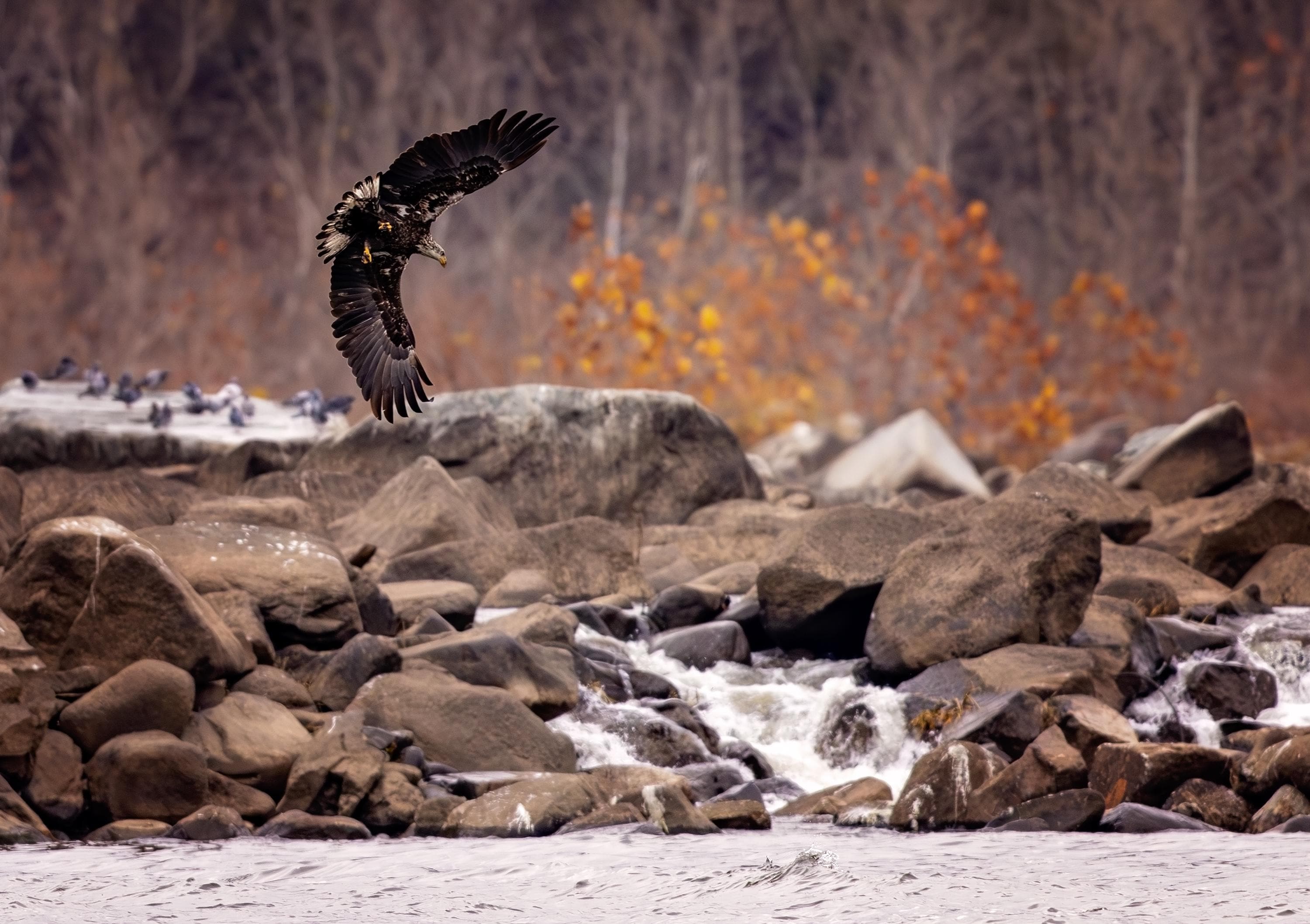 A Juvenile Bald Eagle squares up to dive in and grab a fish at Conowingo Dam.